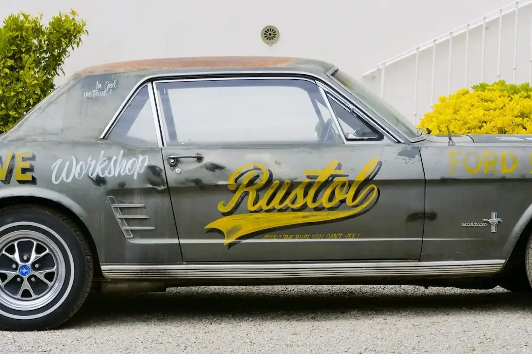 Le sponsor principal, Rustol, introduit une touche d’ironie assumée : même marquées par le temps, certaines voitures conservent un charme indéniable et une identité forte.